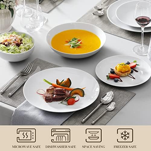 MALACASA 24-Piece Gourmet Porcelain Dinnerware Sets, Modern White Round Dish Set for 6 – Premium Serving Plates and Bowls Sets for Dessert, Salad, Soup, Pasta – Series AMELIA